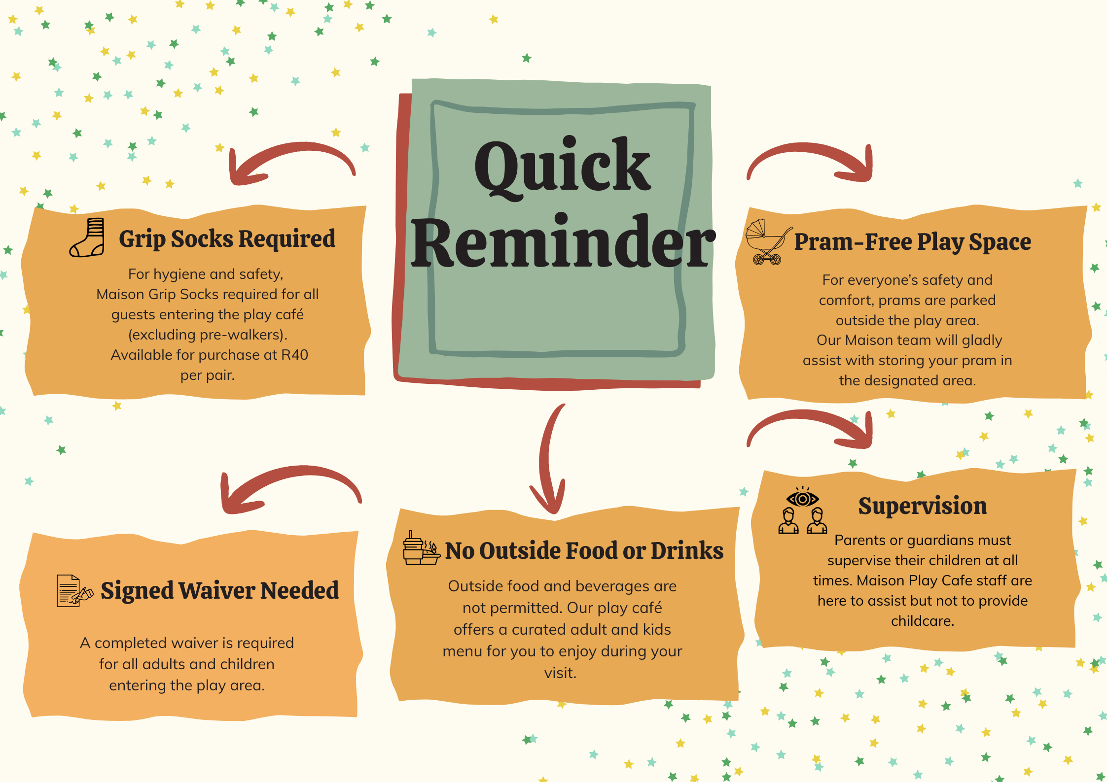 For hygiene reasons, only grip socks are permitted inside the play area.